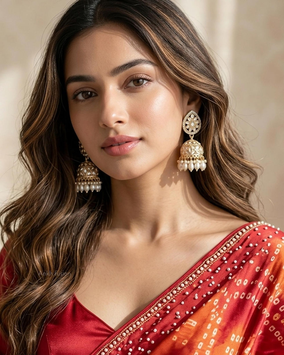 - Traditional Indian Earrings and Matha Patti for Special Occasions.